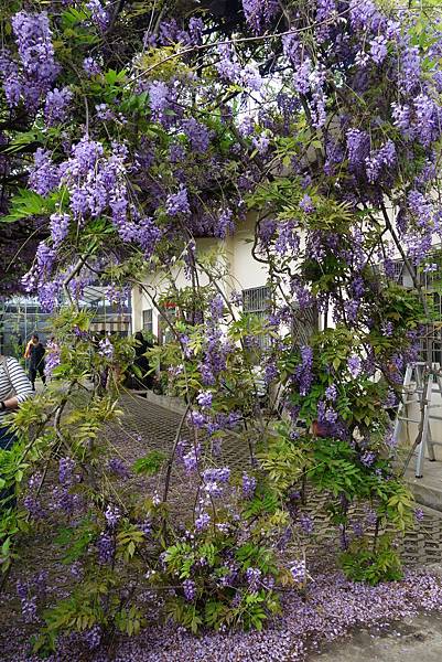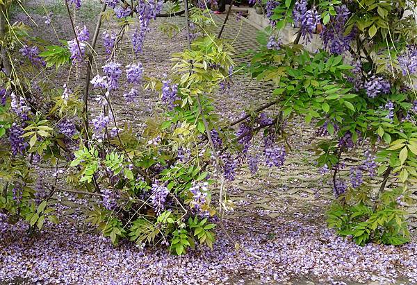 而且站在花棚下,微風吹過就帶著幾片紫藤的花瓣