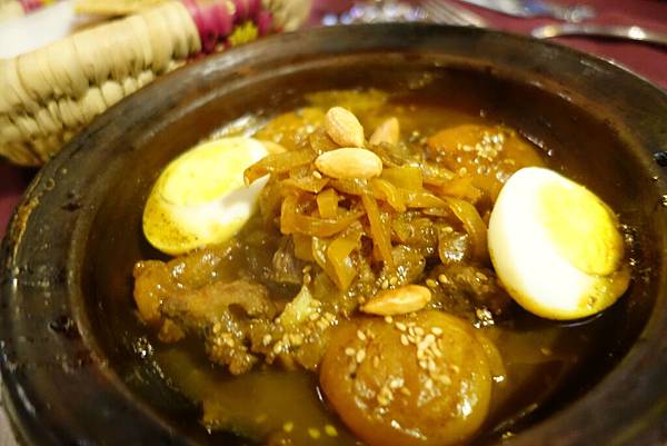 晚餐在民宿用餐 , 是很好吃的牛肉杏桃塔津鍋料理