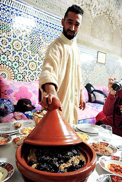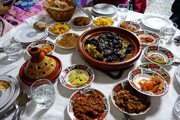 午餐是羊肉黑棗塔津料理 , 配菜超豐盛的喔