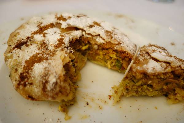 食物也很棒 , 尤其是上面灑了細白糖和肉桂粉的巴斯蒂亞派